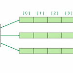 # 2차원 배열 (TWO-DIMENSIONAL ARRAYS) 2차원 배열은 사실 일차원 배열이다. 단지, 배열의 요소가 1차원 배열로 이루어져 있을 뿐이다. 2차원 배열을 선언할 때 우리는 주로 int arr[3][5] 와 같이 선언한다. 하지만 우리는 실제로 길이가 3인 배열 x를 생성했을 뿐이고, x의 각 요소들이 길이가 5인 일차원 배열일 뿐이다. 아래 그림을 살펴보자. 이 그림은 2차원 배열의 메모리 구조를 보여주고 있다. 먼저, 회색으로 통째로 칠해진 블럭을 보면 3개의 포인터를 가질 수 있는 크기로 되어 있다. 그리고 그 포인터를 따라가면, 5개의 integer 변수를 포함할 수 있는 녹색블럭이 각 3개가 나온다. C 에서 arr[i][j] 를 찾아가는 과정은 이렇다. 첫째로, x[i] 포인터..