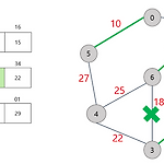 # Kruskal의 MST 알고리즘 Kruskal의 알고리즘은 탐욕적인 방법(greedy method)을 이용한다. 탐욕적인 방법은 알고리즘 설계에 있어 중요한 기법 중 하나다. 결정을 해야 할 때, 그 순간에 가장 좋다고 생각되는 것을 해답으로 선택하는 방법을 말한다. 순간 순간의 최선을 선택해 최종적인 해답에 도달하는 과정인 것이다. 당시에 최적이라고 생각했던 선택들을 모은다고 해서 최종적인 결과가 최적의 해답이라는 보장은 없다. 따라서 탐욕적인 방법은 항상 검증이 필요하다. 다행히 Kruskal 알고리즘은 최적의 해답을 주는 것으로 증명되어 있다. Kruskal의 알고리즘은 최소 비용 신장 트리가 최소 비용의 간선으로 구성됨과 동시에 사이클을 포함하지 않는다는 조건을 기초로 각 단계에서 사이클을 이..